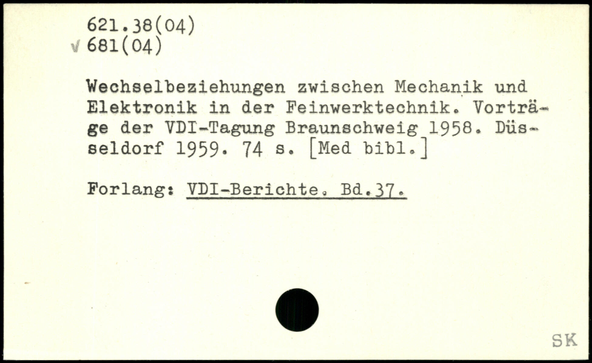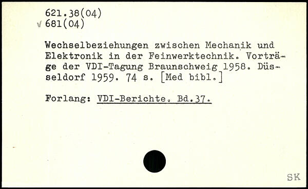 Wechselbeziehungen zwischen Mechanik und Elektronik in der Feinwerktechnik. Vorträge der VDX-Tagung Braunschweig 1958, Düsseldorf 1959.