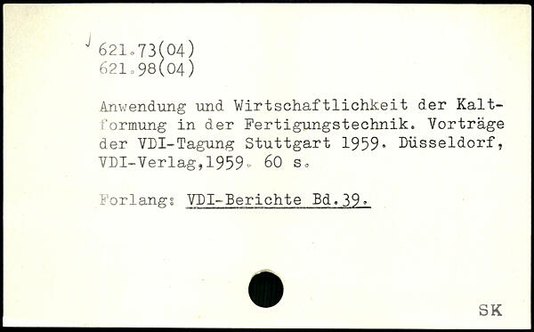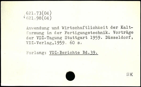 Anwendung und Wirtschaftlichkeit der Kaltformung in der Fertigungstechnik. Vorträge der VDI-Tagung