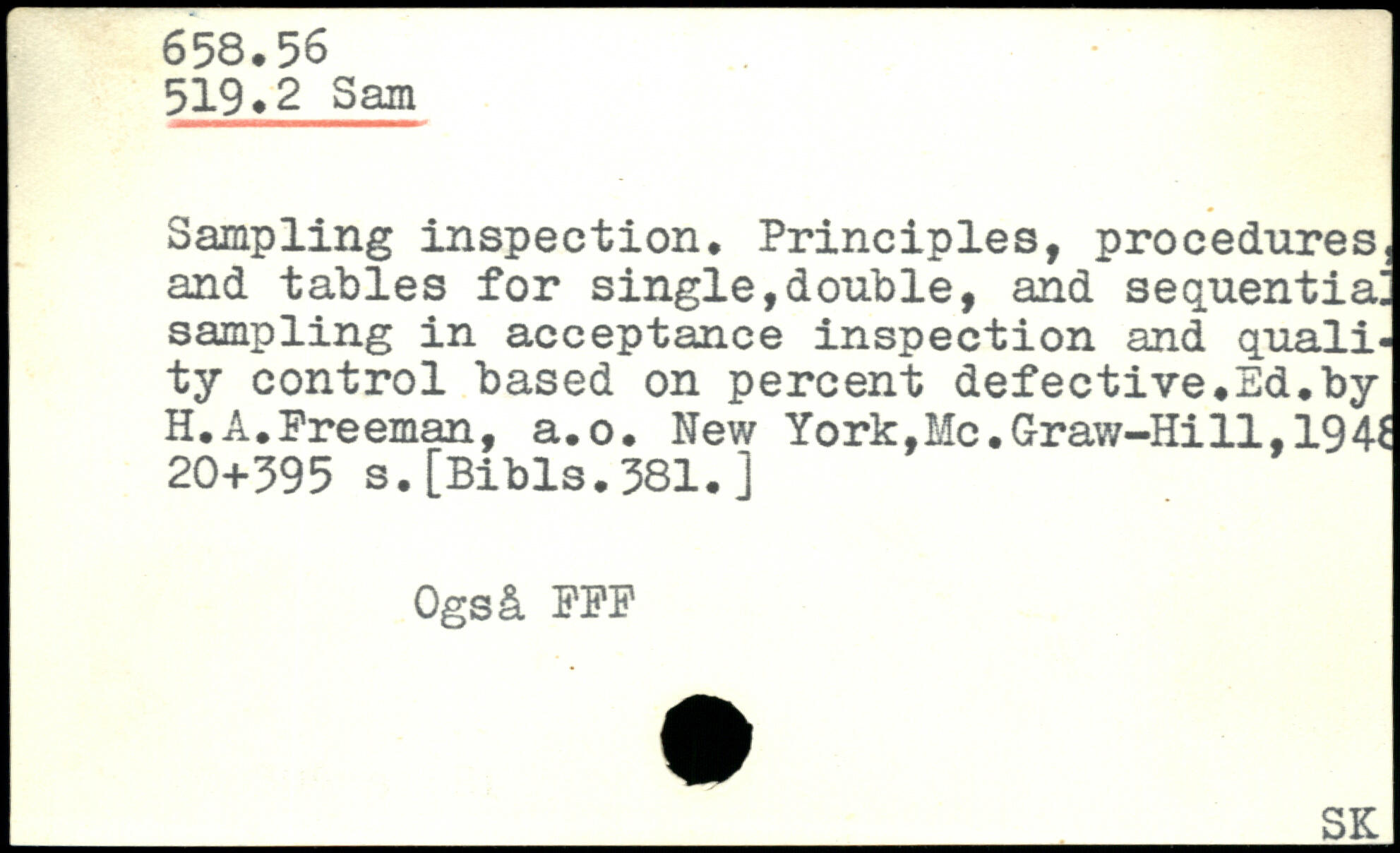 Sampling inspection. Principles, procedures, and tables for single,double, and sequential sampling in acceptance inspection and quali, ty control based on percent defective.Ed.by H.A.Freeman, a.o. New York,Mc.G-raw-Hill,194.