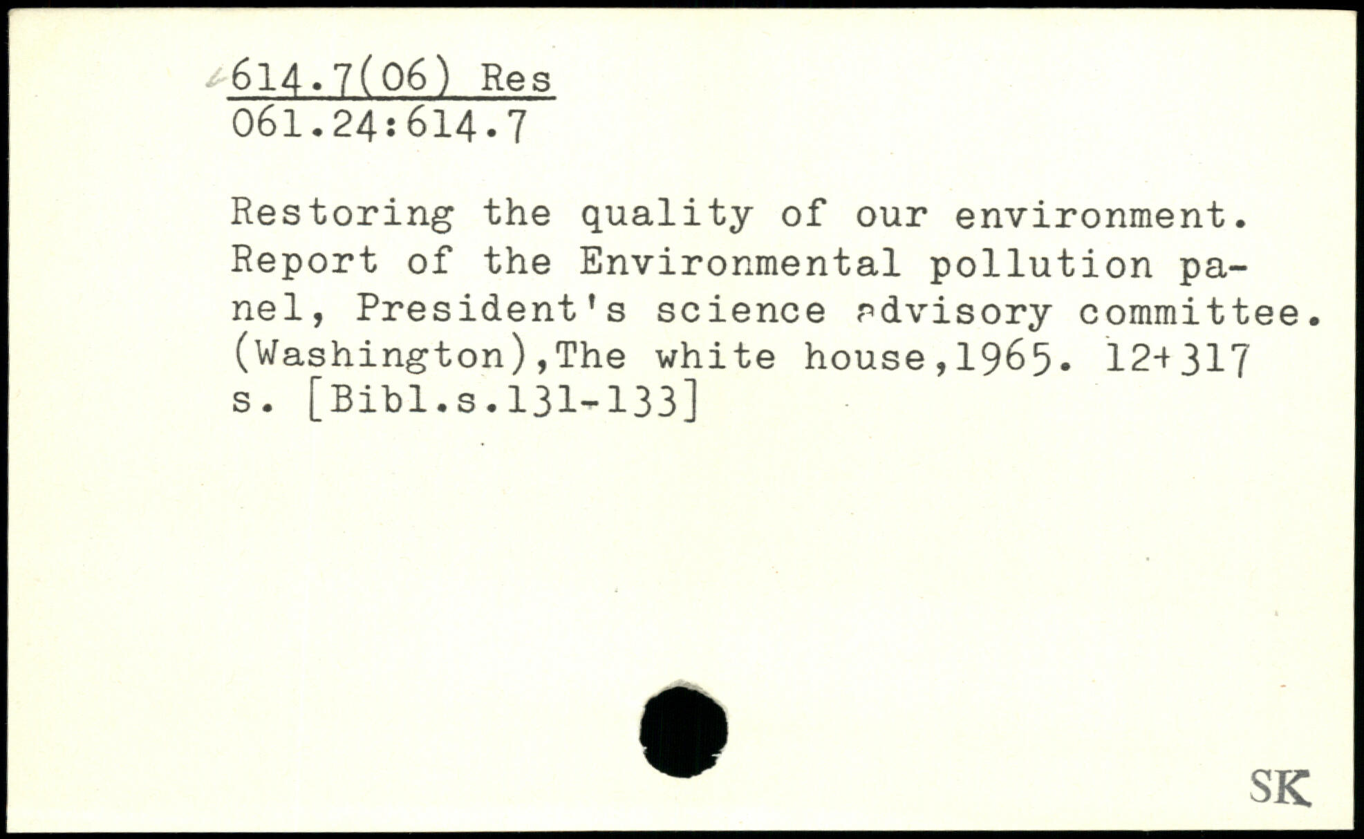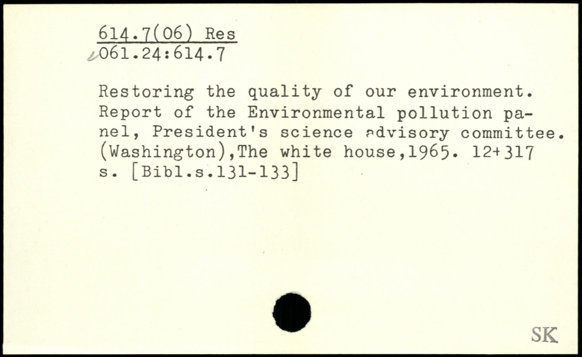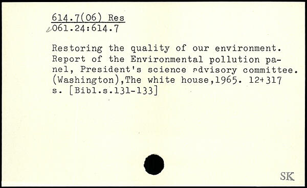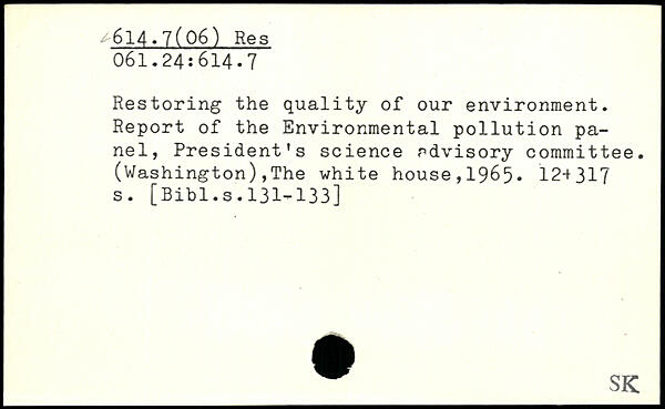 Restoring the quality of our environment. Report of the Environmental pollution panel, President’s science advisory committee. (Washington),The white house,1965