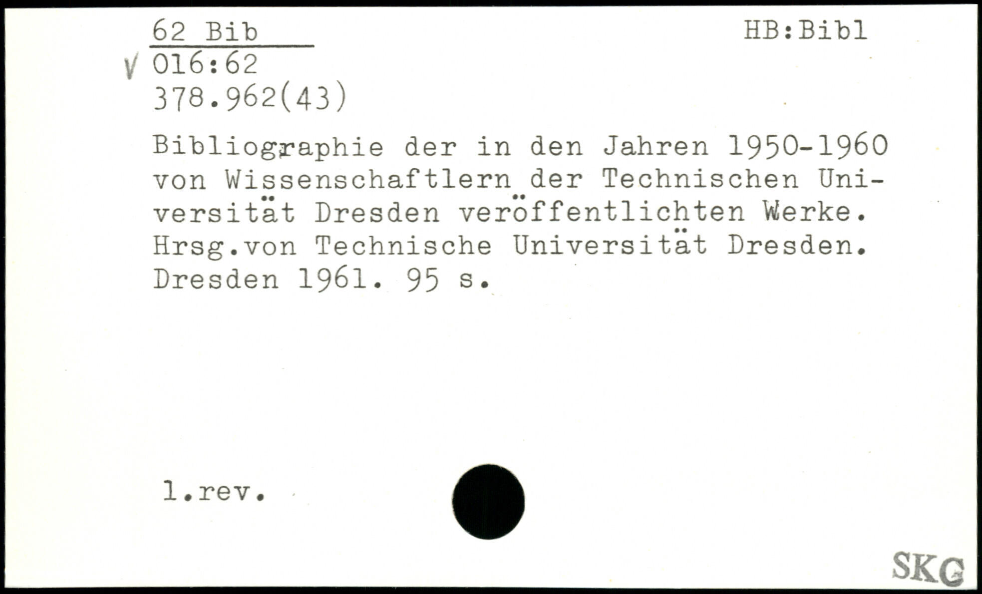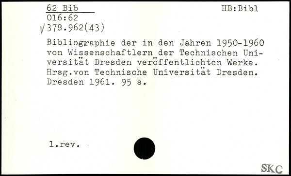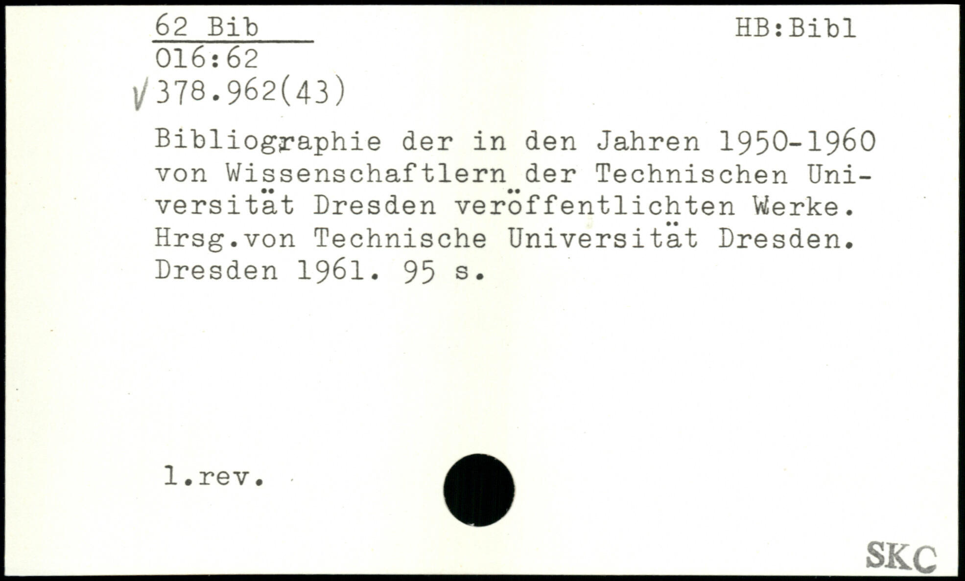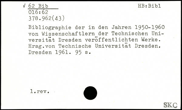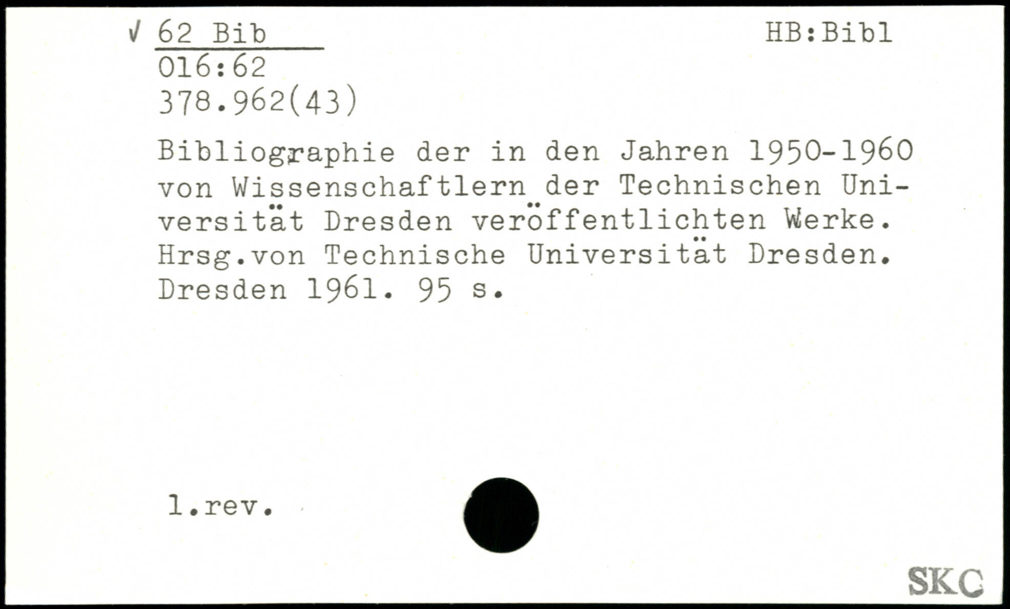 Bibliographie der in den Jahren 1950-1960 von Wissenschaftlern der Technischen Universität Dresden veröffentlichten Werke. Hrsg.von Technische Universität Dresden. Dresden 1961.