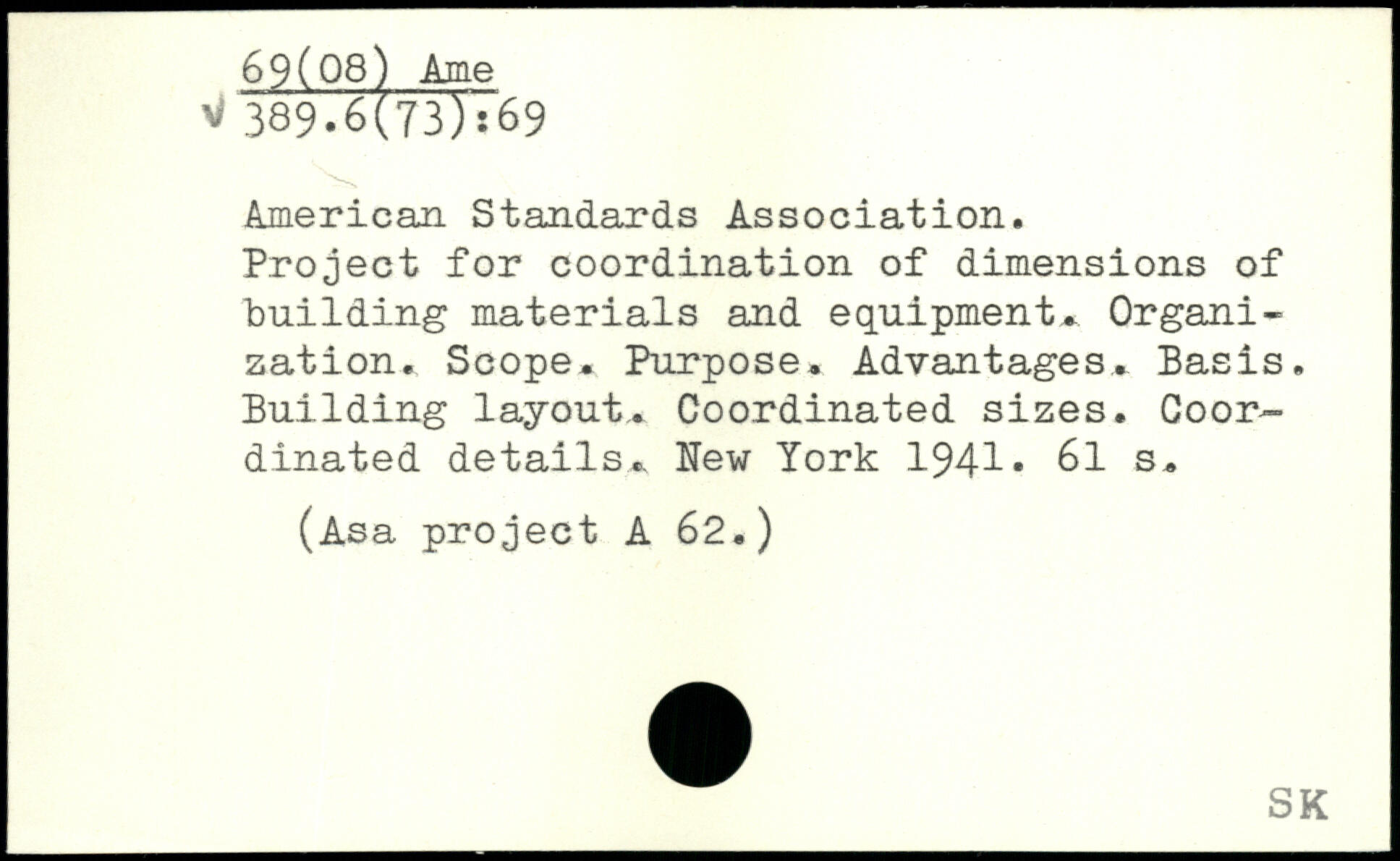 American Standards Association. Project for coordination of dimensions of building materials and equipment. Organization. Scope. Purpose. Advantages. Basis. Building layout. Coordinated sizes. Coordinated details.
