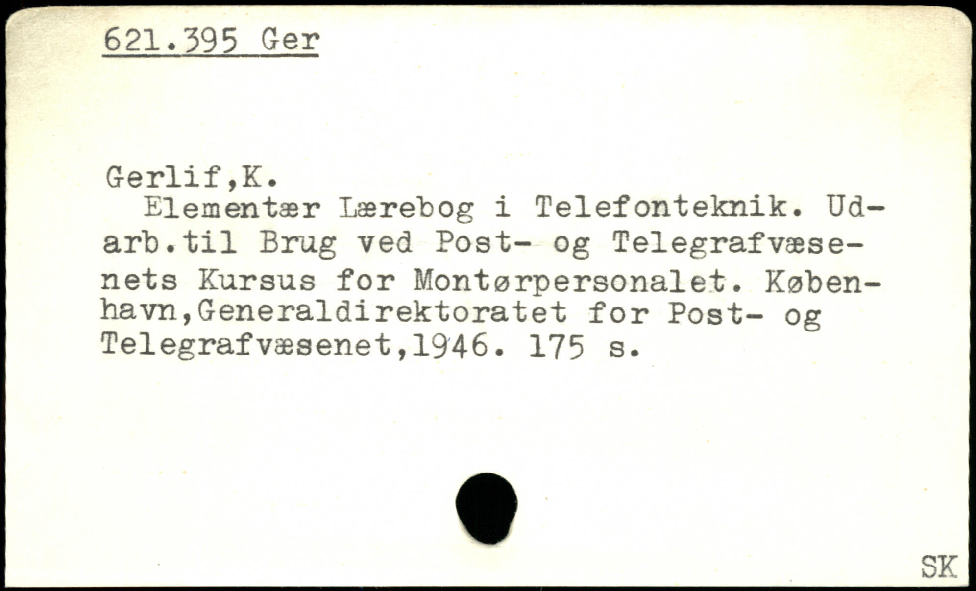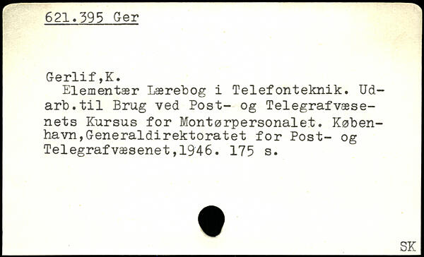 Elementær Lærebog i Telefonteknik. Ud— arb.til Brug ved Post- og Telegrafvæsenets Kursus for Montørpersonalet. København, Generaldirektoratet for Post- og Telegrafvæsenet,1946.