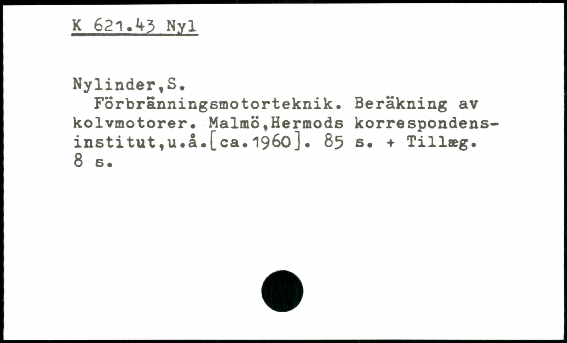 Förbränningsmotorteknik. Beräkning av kolvmotorer. Malmö,Hermods korrespondens-institut ,u.å.[ca.1960].