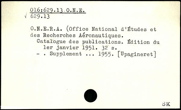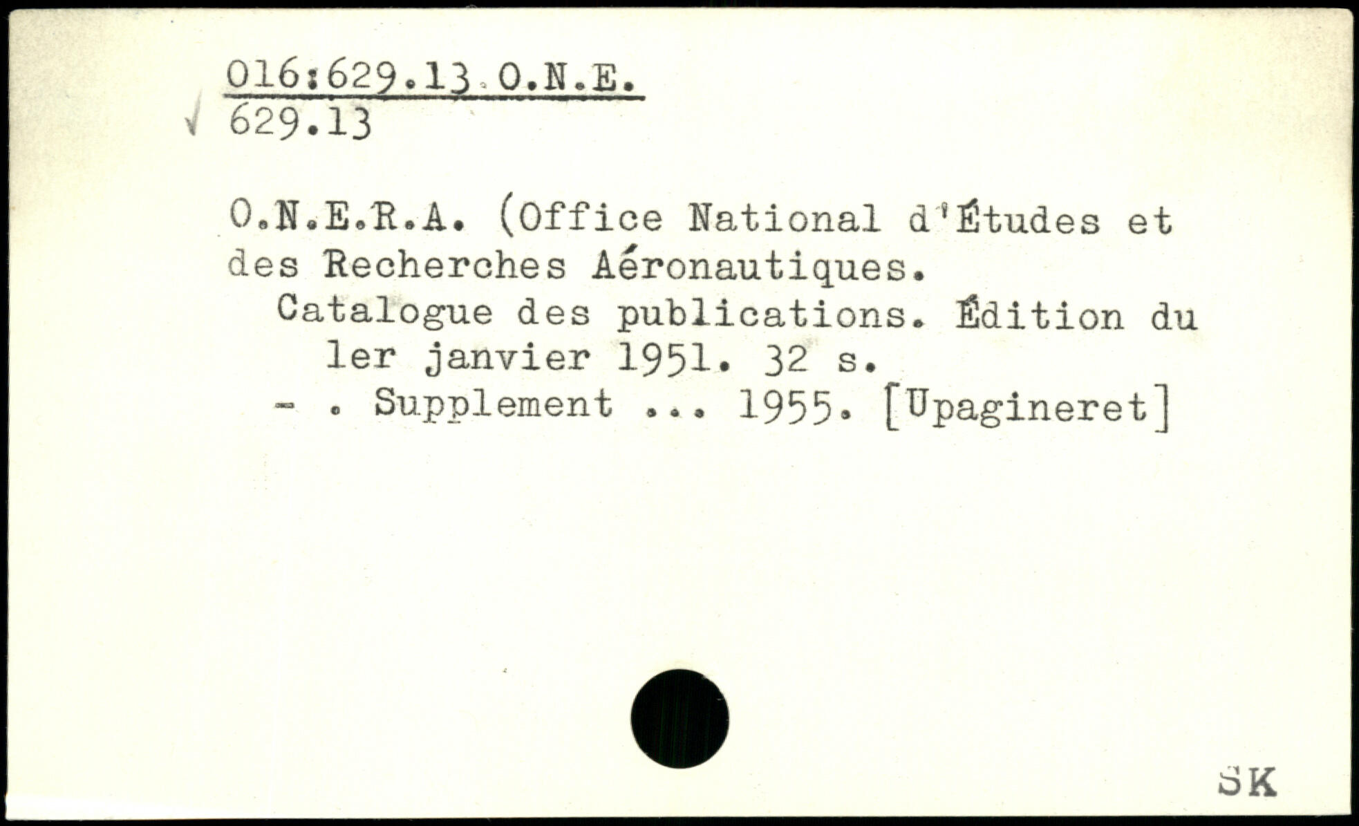 O.N.E.R.A. (Office National d'1 Études et des Recherches Aeronautiques. Catalogue des publications. Édition du 1er janvier 1951.