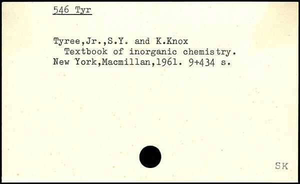 Tyree,Jr.,S.Y. and K.Knox Textbook of inorganic chemistry.