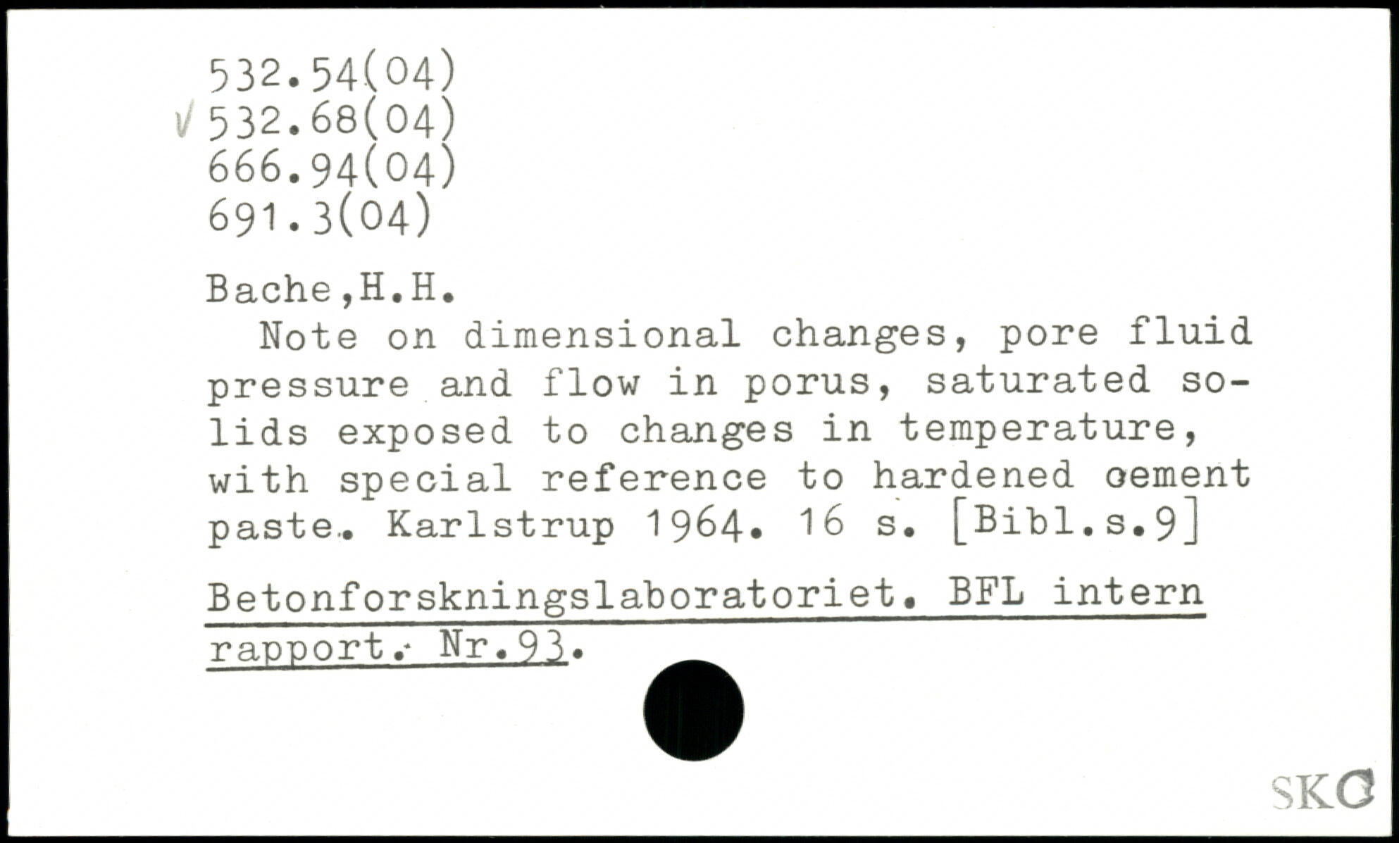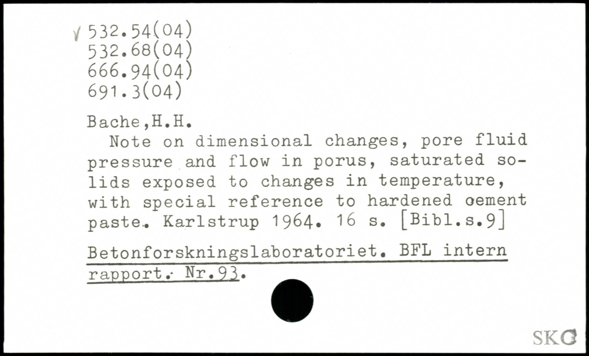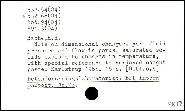 Note on dimensional changes, pore fluid pressure and flow in porus, saturated solids exposed to changes in temperature, with special reference to hardened cement paste.. Karlstrup 19^4
