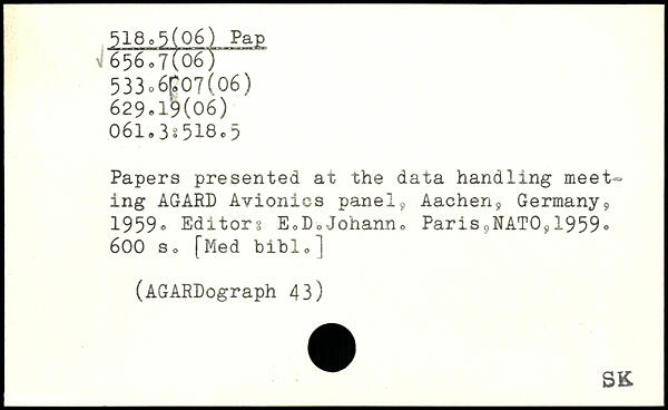 Papers presented at the data handling meet-ing AGARD Avionics panel9 Aachen9 Germany9 1959. Editors EoDoJohamio Paris9NATOs1959.