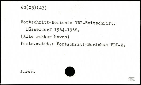 Fortschritt-Berichte VDI-Zeitschrift. Düsseldorf 1964-1968.