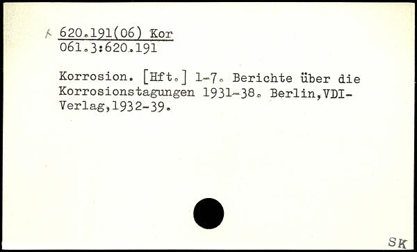 Korrosion. [Hft,] 1-7. Berichte über die Korrosionstagungen 1931-38.