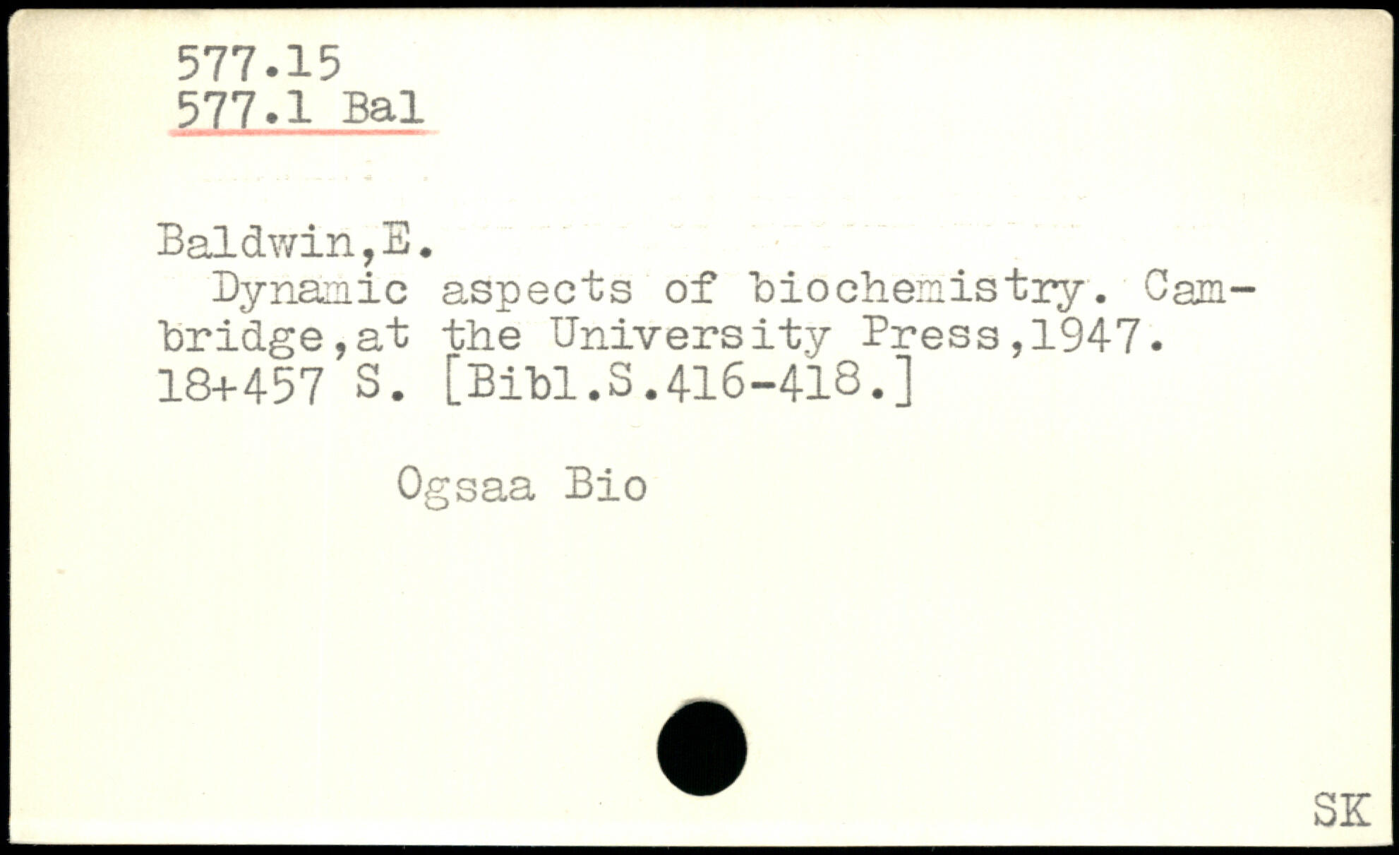 Dynamic aspects of 'biochemistry. Cambridge, at the University Press,1947.