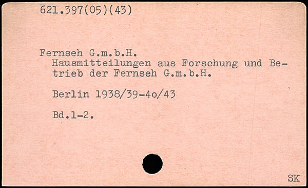 Fernseh G.m.b.H. Hausmitteilungen aus Forschung und Betrieb der Fernseh G-.m.b.H.