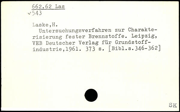 Untersuchungsverfahren zur Charakterisierung fester Brennstoffe. Leipzig, VEB Deutscher Verlag für Grundstoffindustrie ,1961.