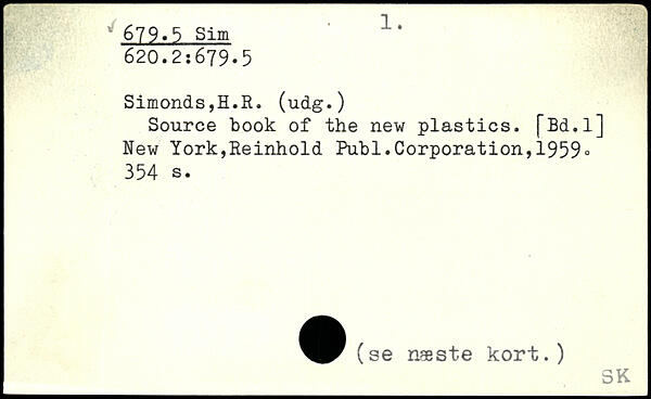 Source book of the new plastics. [Bd.l] New York,Reinhold Publ.Corporation,1959