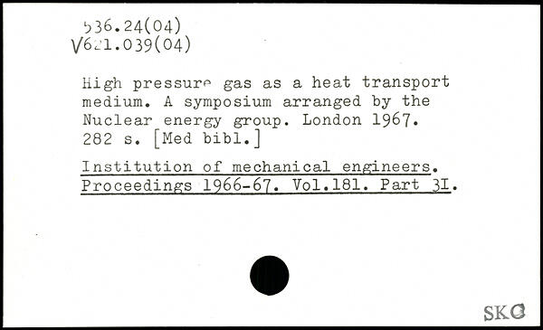 High pressure gas as a heat transport medium. A symposium arranged by the Nuclear energy group.