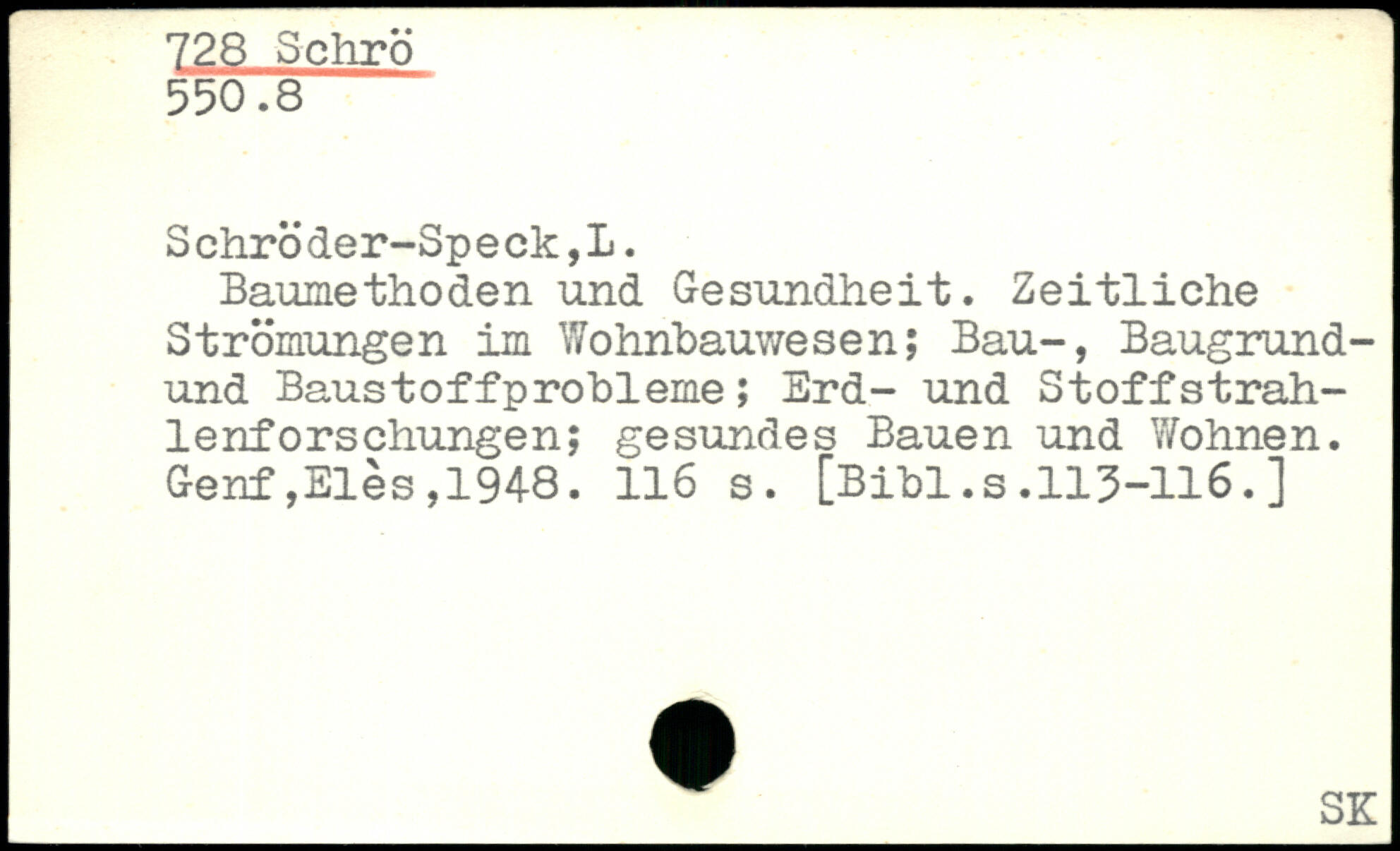 S chrö der-8p e ck,L. Baumethoden und Gesundheit. Zeitliche Strömungen im Wohnbauwesen; Bau-, Baugrund-und Baustoffprobleme; Erd- und Stoffstrah-lenforschungen; gesundes Bauen und Wohnen.