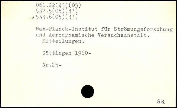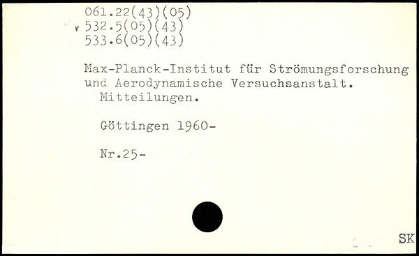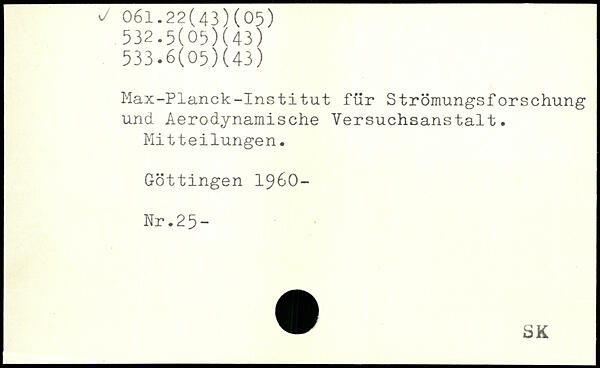 Max-Planck-Institut für Strömungsforschung und Aerodynamische Versuchsanstalt. Mitteilungen. Göttingen 1960- Nr.25-