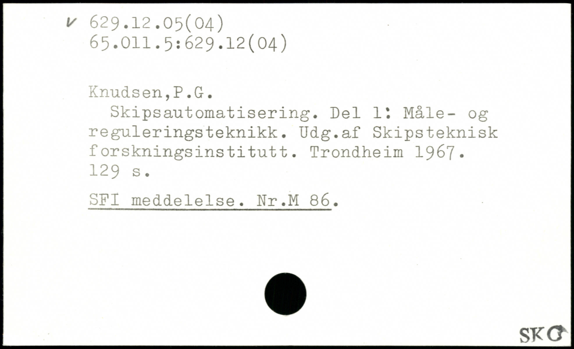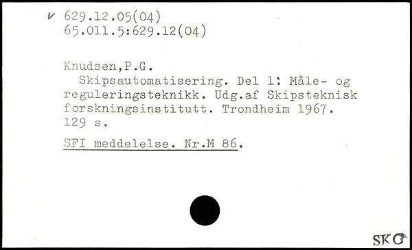 Skipsautomatisering. Del lt Måle- og reguleringsteknikk. Udg.af Skipsteknisk forskningsinstitutt.