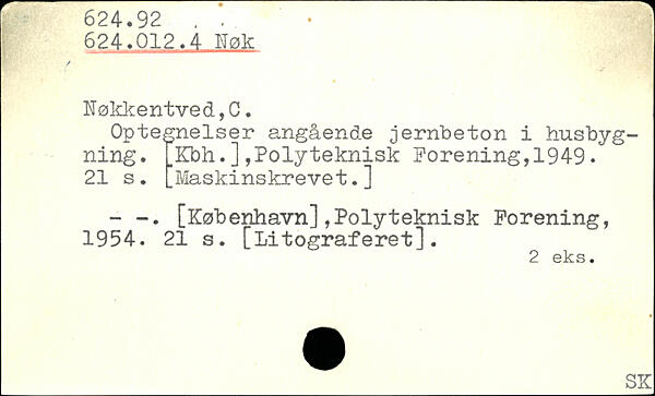 Optegnelser angående jernbeton i husbygning. _Kbh. ], Polyteknisk Forening,1949.