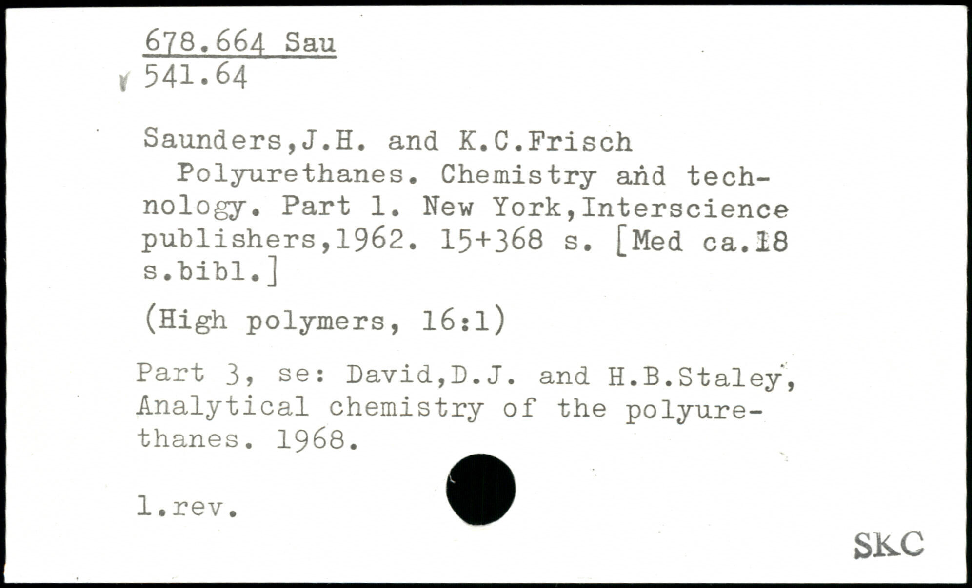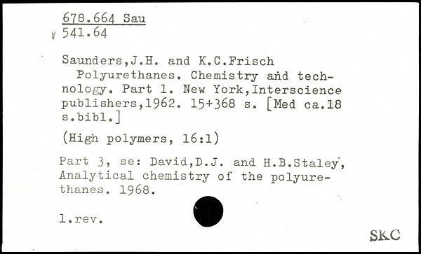 ForsideBøgerPolyurethanes. Chemistry and technology. Part 1.