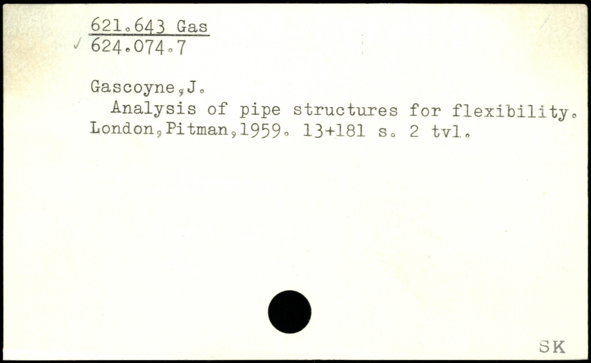 Gascoyne 5Jo Analysis of pipe structures for flexibility., London9Pitman,1959o