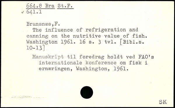 Bram.snæs, F. The influence of refrigeration and canning on the nutritive value of fish.