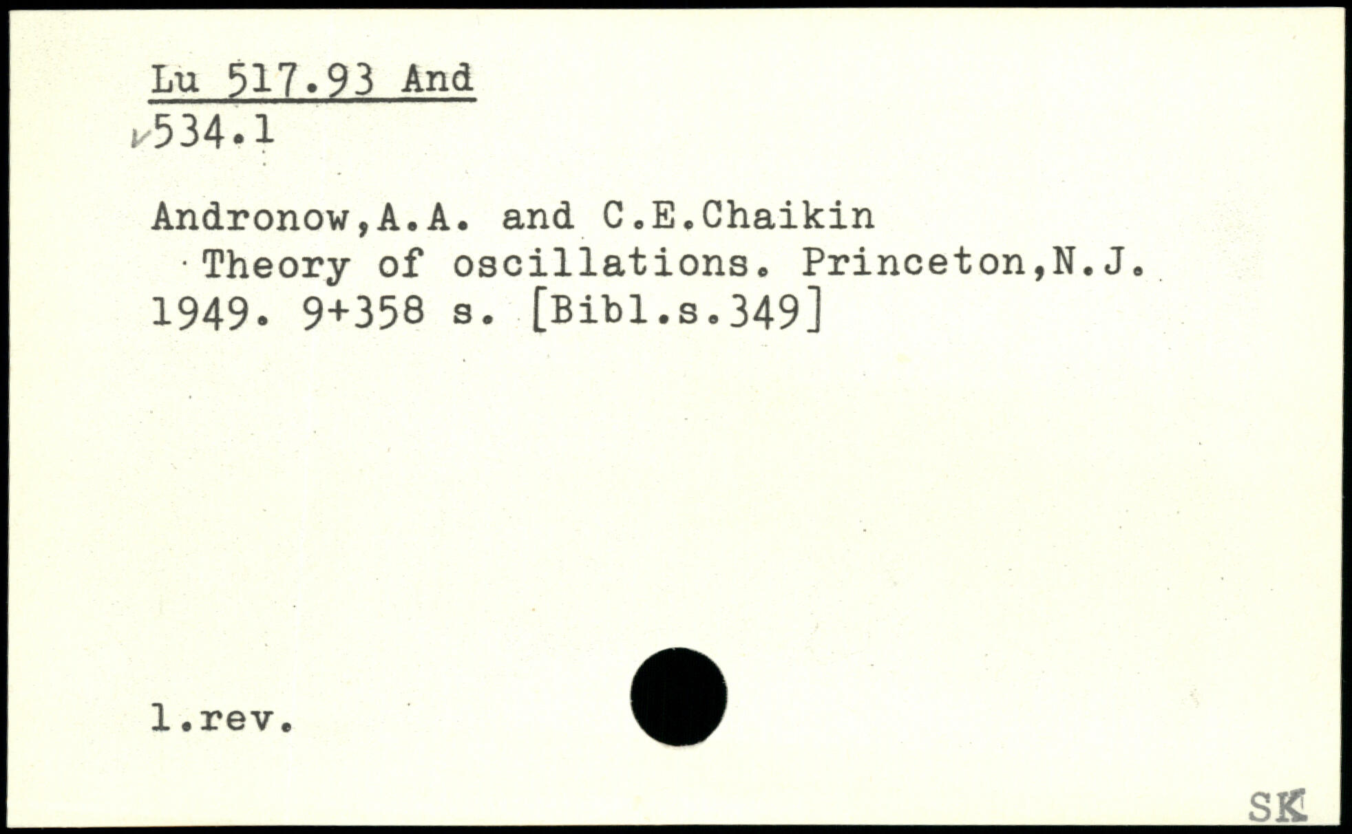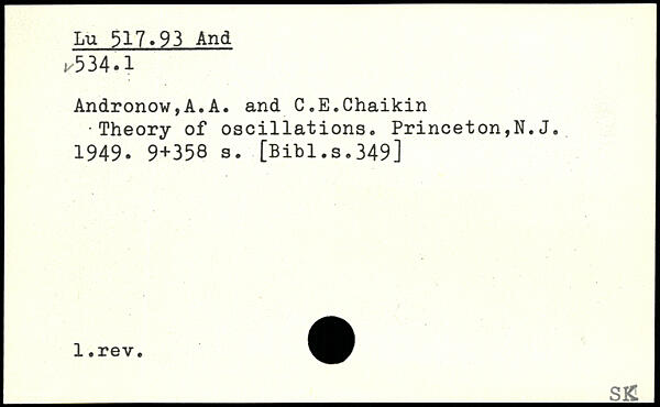 Andronow,A.A. and C.E.Chaikin .Theory of oscillations. Princeton,N.J. 1949.