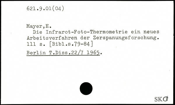 Die Infrarot-Foto-Thermometrie ein neues Arbeitsverfahren der Zerspanungsforschung.