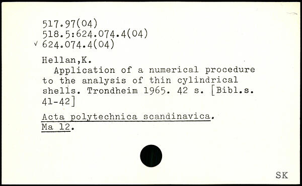 Application of a numerical procedure to the analysis of thin cylindrical shells. Trondheim 19^5