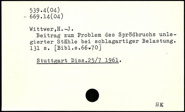Beitrag zum Problem des Sprödbruchs unlegierter Stähle bei schlagartiger Belastung.