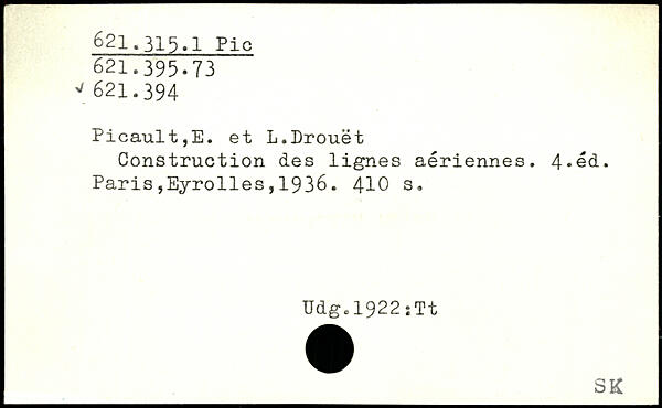 Picault,E. et L.Drouët Construction des lignes aériennes. 4.éd.
