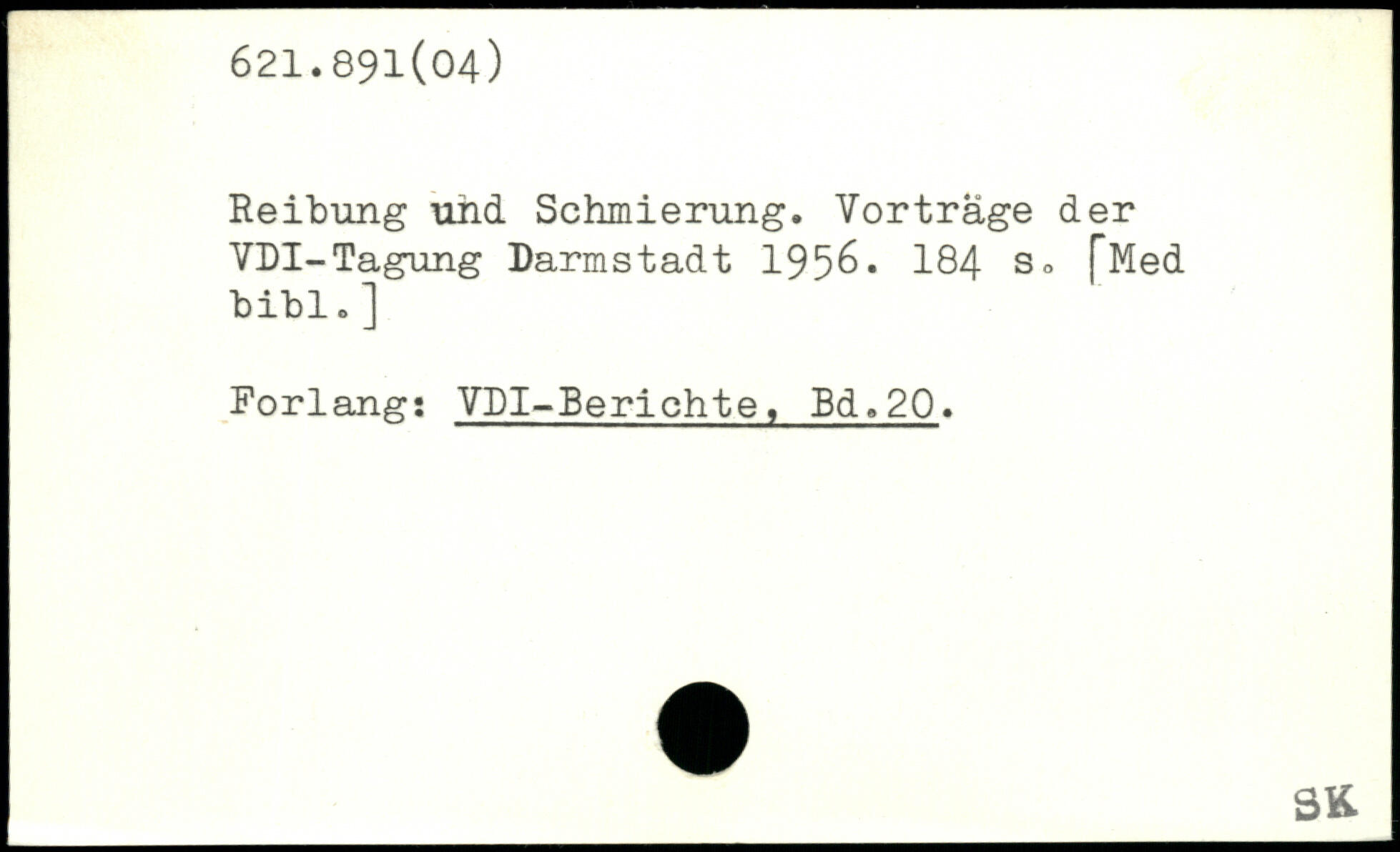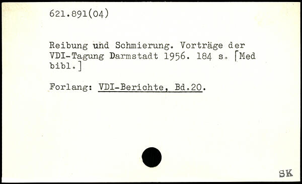 Reibung und Schmierung. Vorträge der VDI-Tagung Darmstadt 195&.