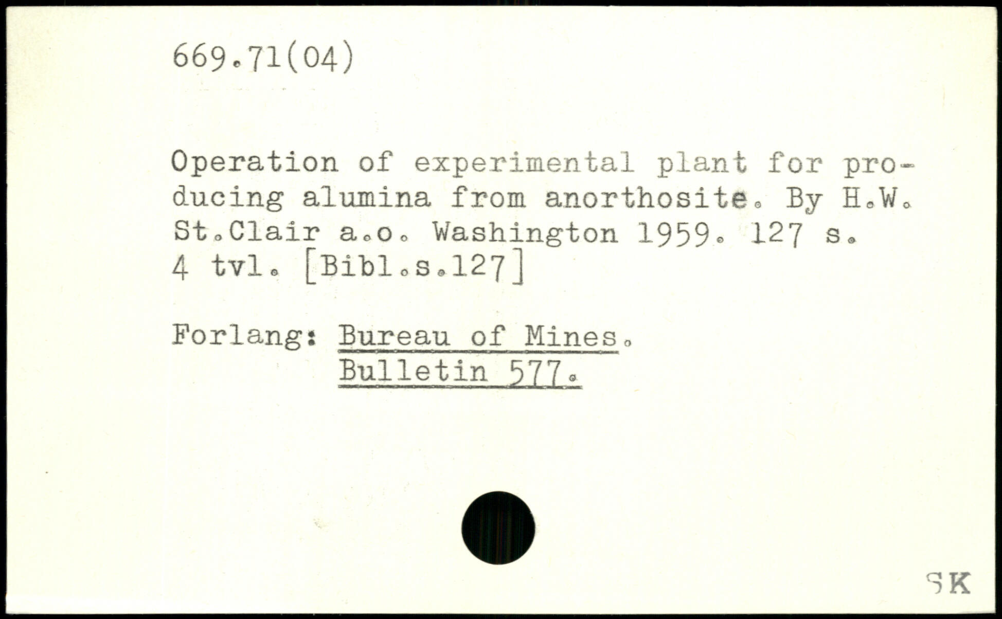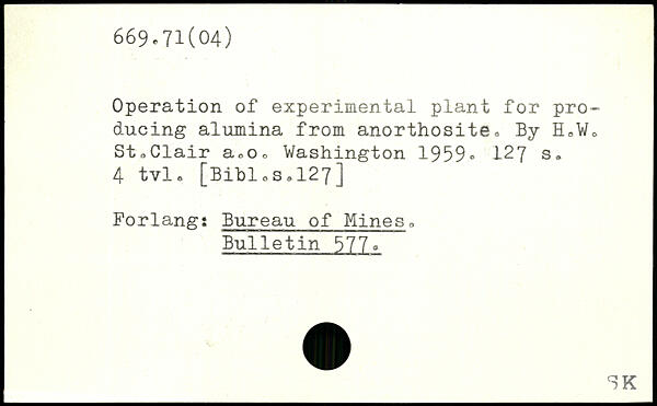 Operation of experimental plant for producing alumina from anorthosite. By ELW. StoClair a,o