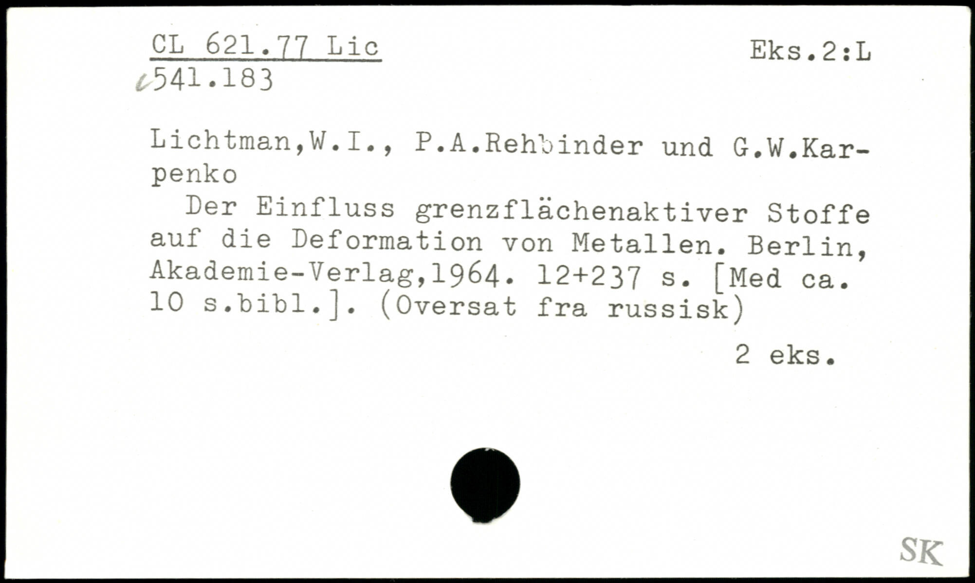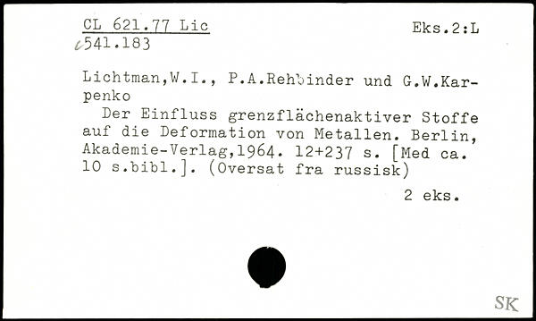 Forfatter: W.I. Lichtraan, P.A. Rehbinder, G.W. Karpenko