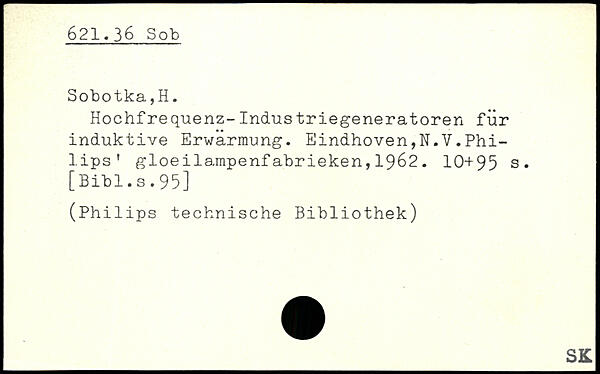 Hochfrequenz-Industriegeneratoren für induktive Erwarmung. Eindhoven,N.V.Philips' gloeilampenfabrieken,1962.