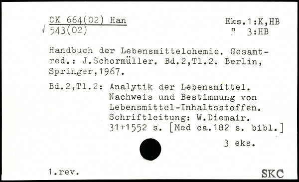 Handbuch der Lebensmittelchemie. Gesamtred.: J.Schormüller.