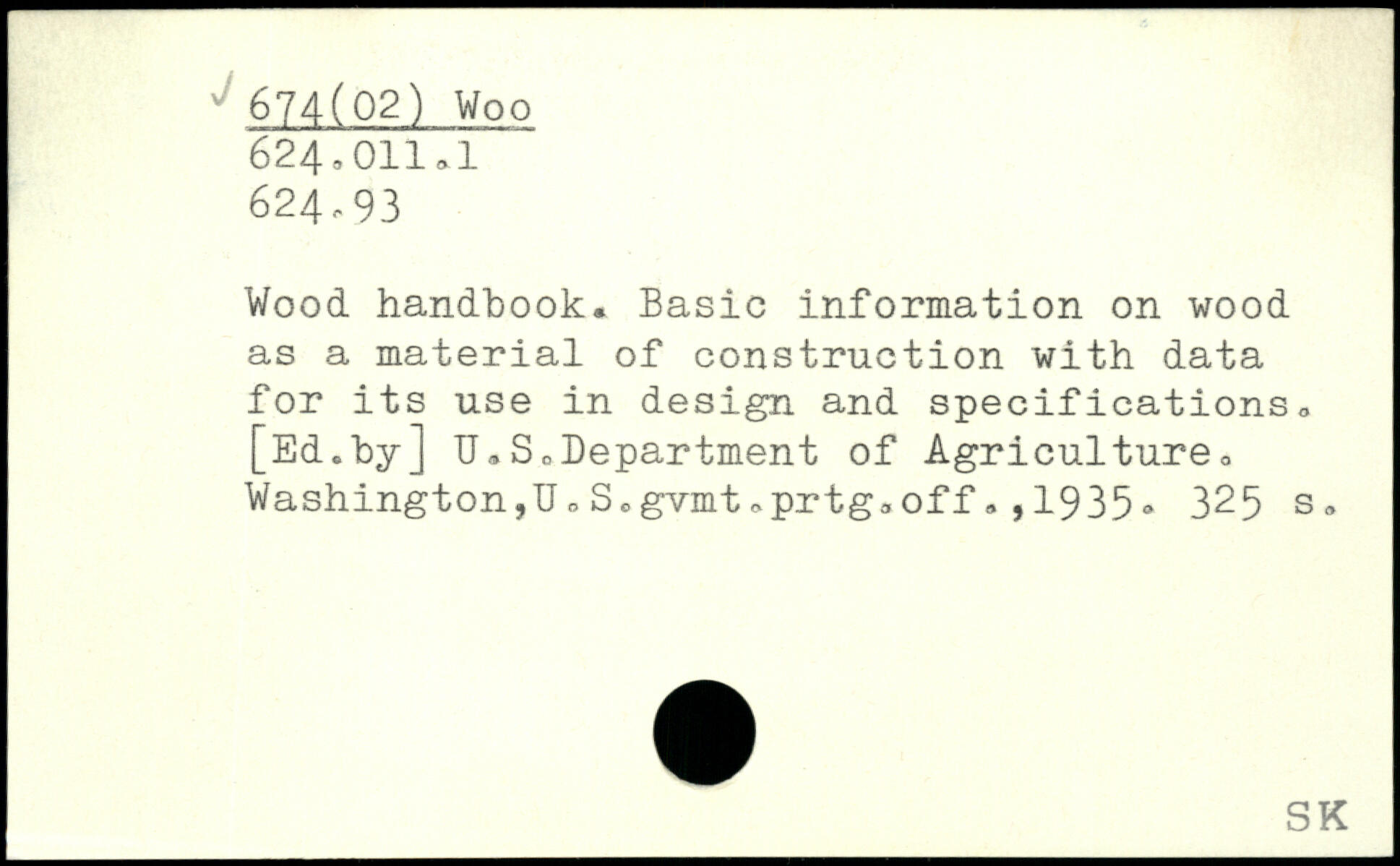 Wood handbook. Basic information on wood as a material of construction with data for its use in design and specifications. [Ed.by] TJ.S0Department of Agriculture. Washington,IJ. S.gvmt.prtg.off1935