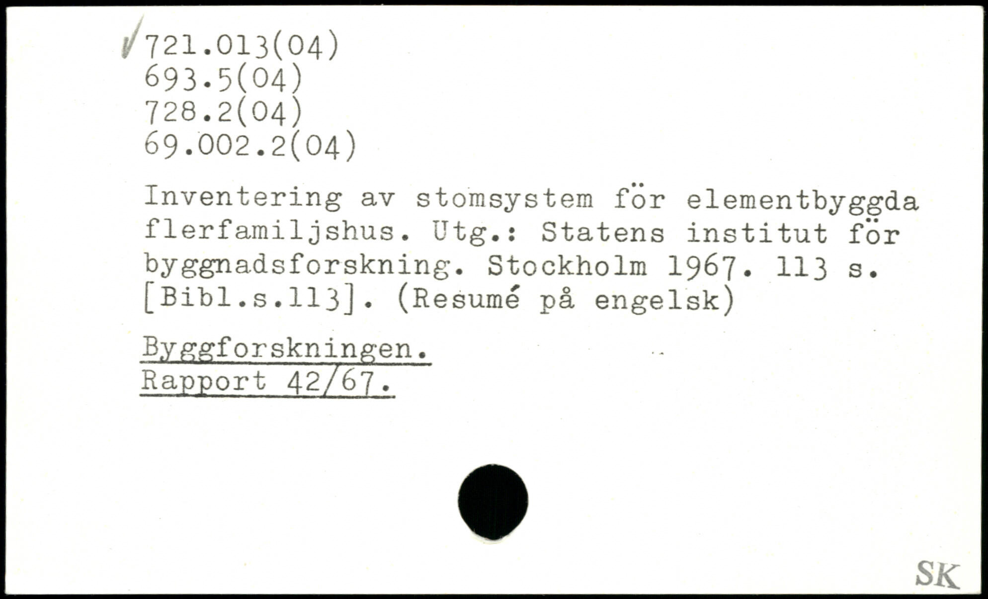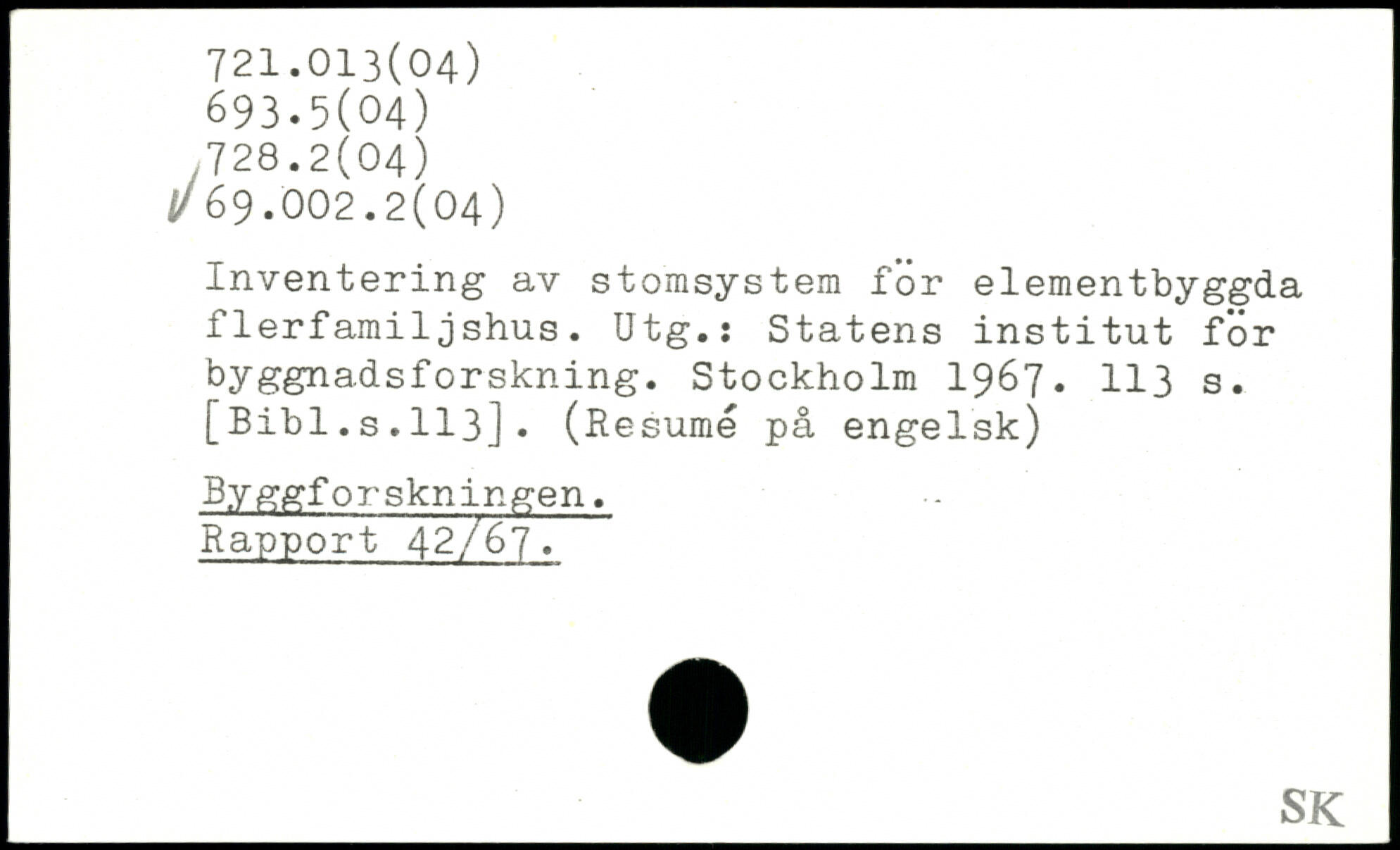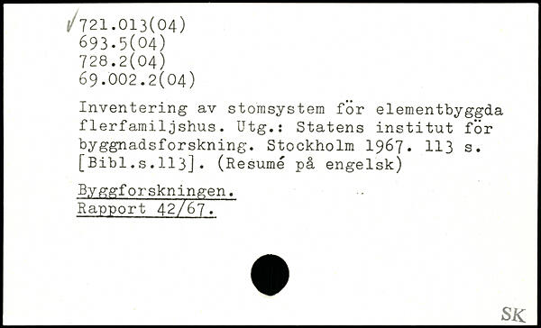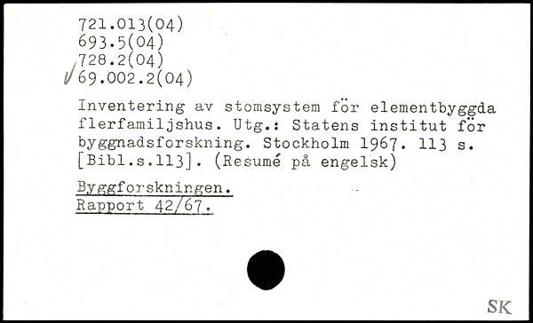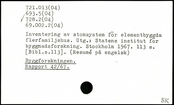 Inventering av stomsystem för elementbyggda flerfamiljshus. Utg.s Statens institut för : byggnadsforskning.