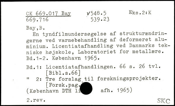 En tyndfilmundersøgelse af strukturændringerne ved varmebehandling af deformeret aluminium. Licentiatafhandling ved Danmarks tekniske højskole, Laboratoriet for metallære.