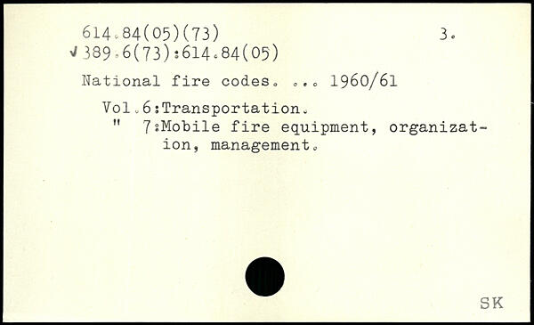 National fire codes, ,.<> 1960/61 Vol, 6:Transportation, M 7sMobile fire equipment, organization, management