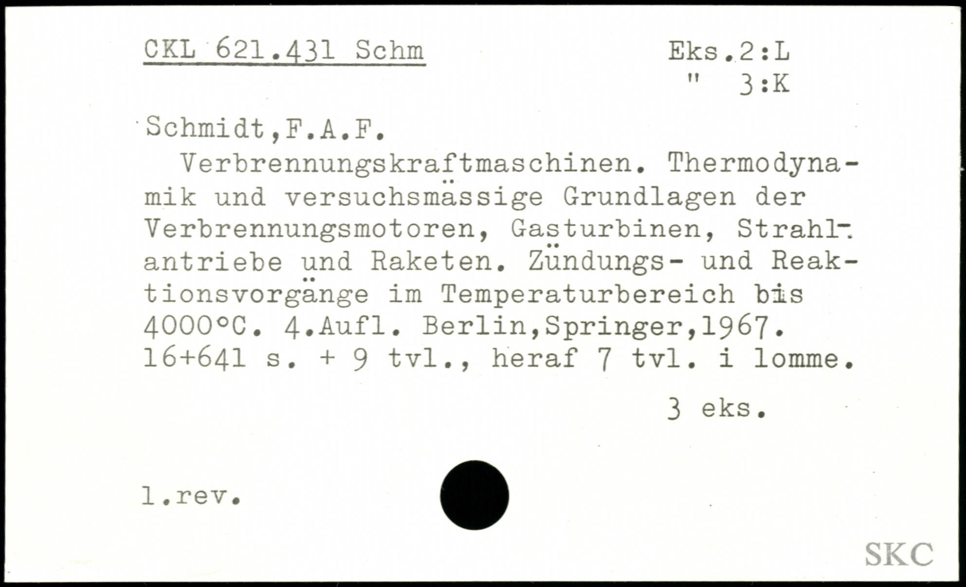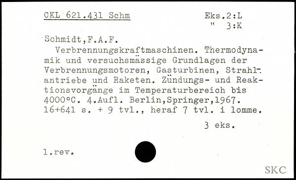 'Schmidt,F.A.F. Verbrennungskraftmaschinen. Thermodynamik und versuchsmassige Grundlagen der Verbrennungsmotoren, Gasturbinen, Strahl“ antriebe und Raketen. Zundungs- und Reak-tionsvorgange im Temperaturbereich bis 4000.C.