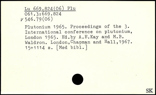 Plutonium 1965, Proceedings of the 3. International conference on plutonium