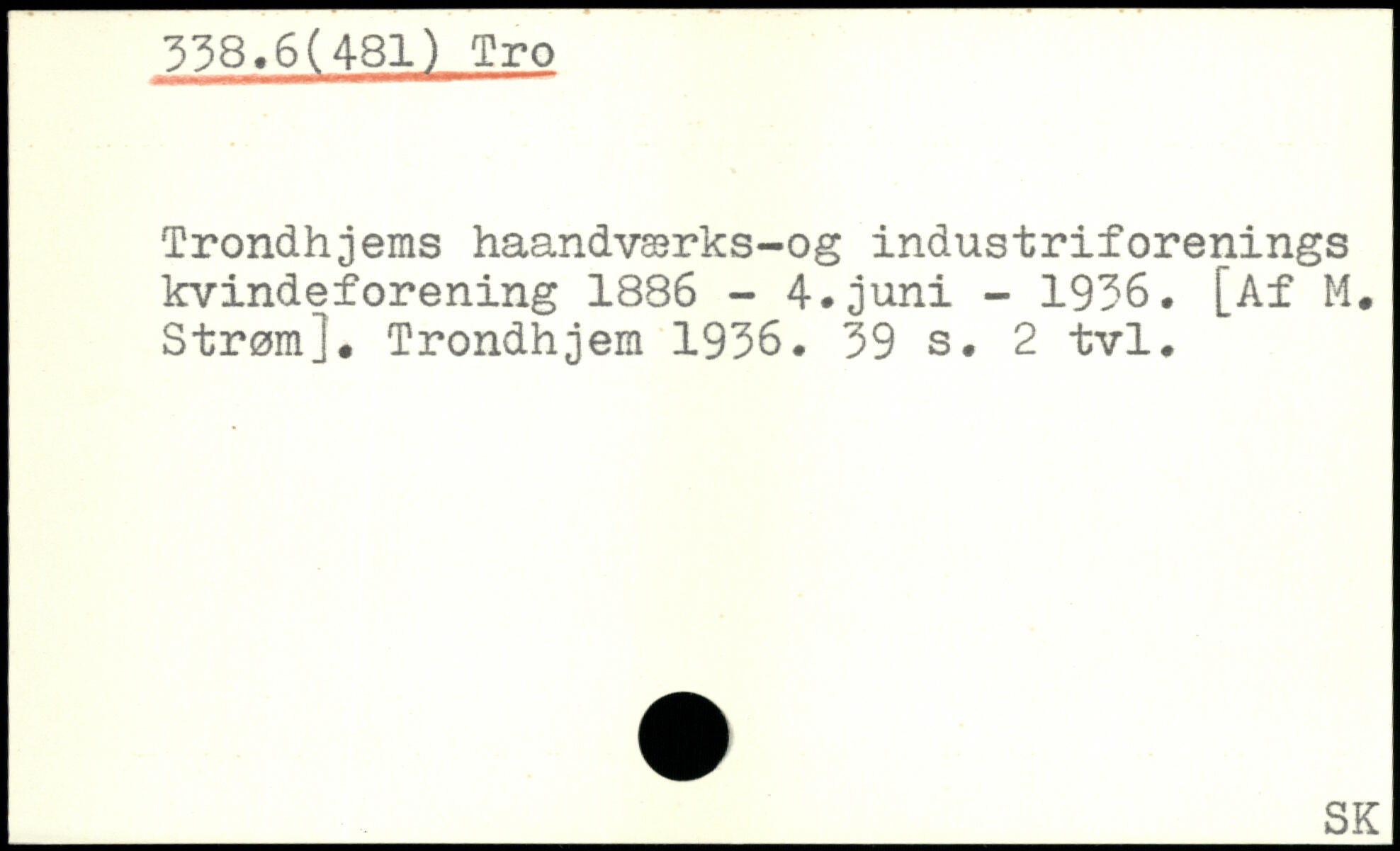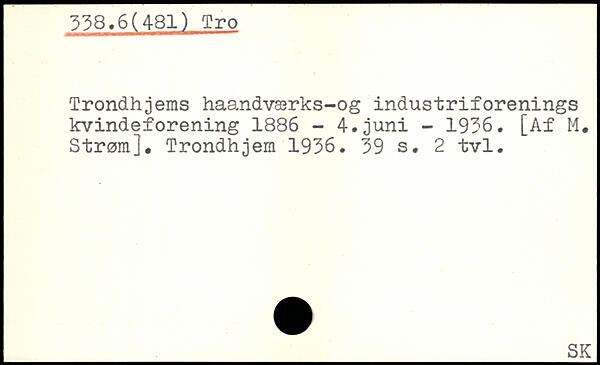 Trondhjems haandværks-og industriforenings kvindeforening 1886 - 4.juni - 1936. [Af M. Strøm]. Trondhjem 1936.