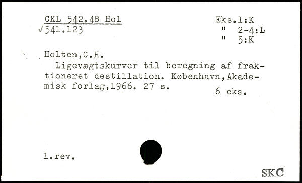 \. Holten,C.H. Ligevægt skurver til beregning af fraktioneret destillation.