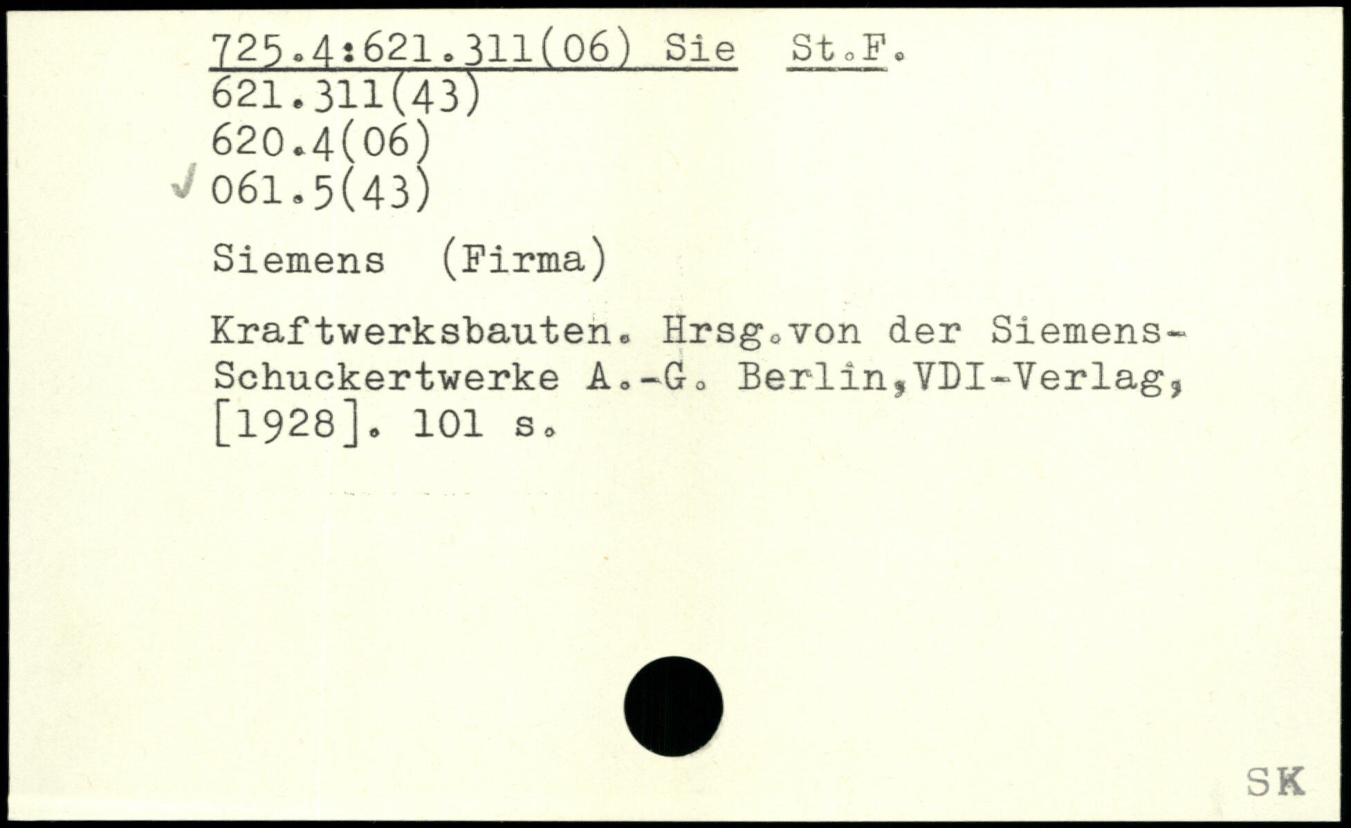 Kraftwerksbauten. Hrsg0von der Siemens-Schuckertwerke A.-G. Berlin,VDI-Verlag,