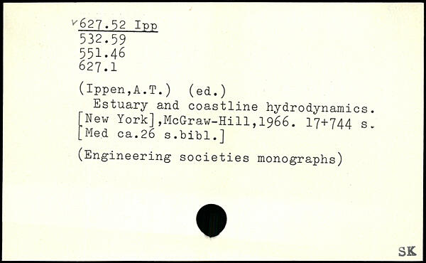 (lppen,A.T.) (ed.) Estuary and coastline hydrodynamics. ,New York],McGraw-Hill,1966.