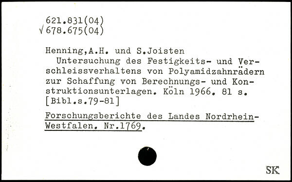 Untersuchung des Festigkeits- und Ver-schleissverhaltens von Polyamidzahnrädern zur Schaffung von Berechnungs- und Konstruktionsunterlagen.