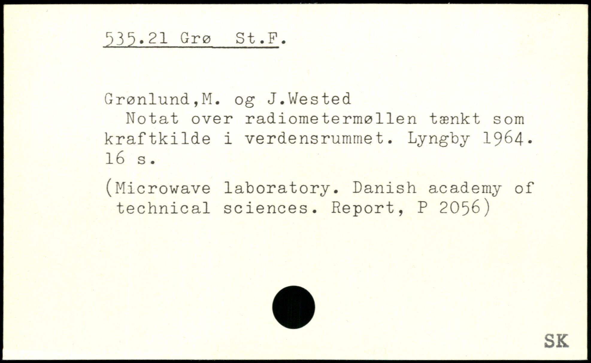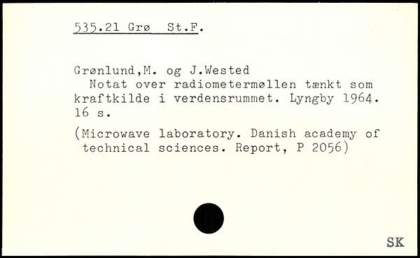 Notat over radioraetermøllen tænkt som kraftkilde i verdensrummet. Lyngby 1964.