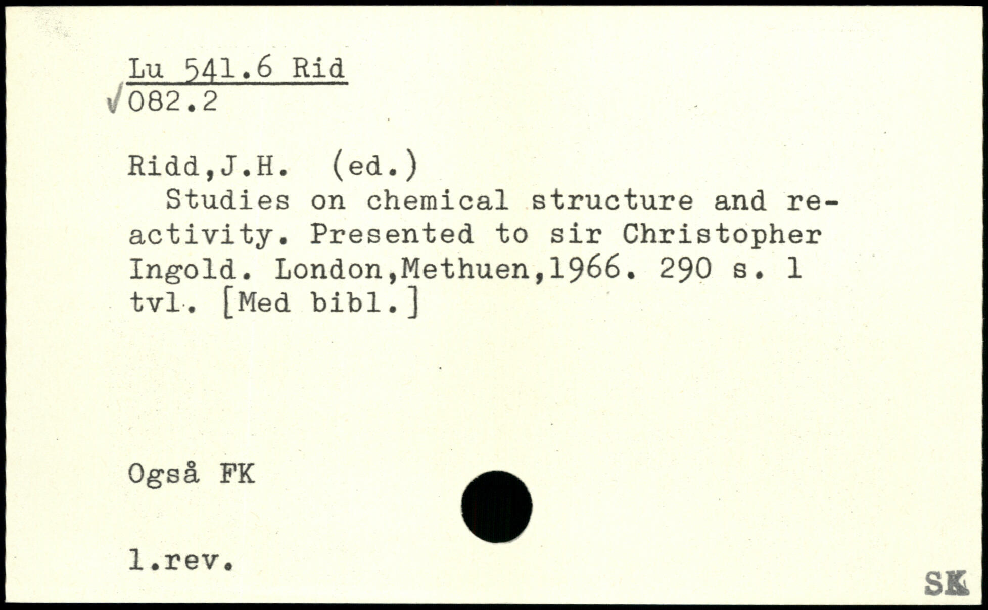 Studies on chemical structure and reactivity. Presented to sir Christopher Ingold.