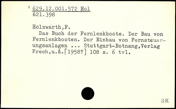 Bas Buch der Fernlenkboote., Der Bau von Fernlenkbooten. Der Einbau von Fernsteuer-ungsanlagen .0. Stuttgart-Botnang,Verlag Frech,u.a.[1958?]